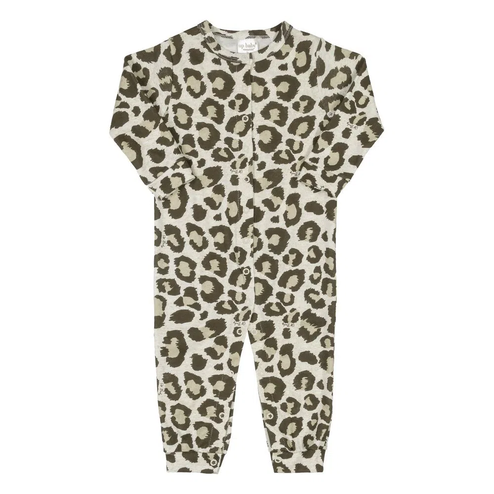 Macacão com abotoamento de pressão na frente e entre as pernas