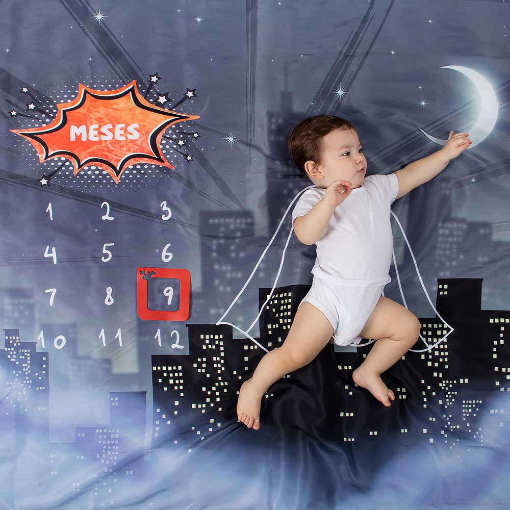 Registre o mês a mês (MESVERSÁRIO) do bebê em cenários fofos e criativos, acompanhando o desenvolvimento deste ano tão especial.